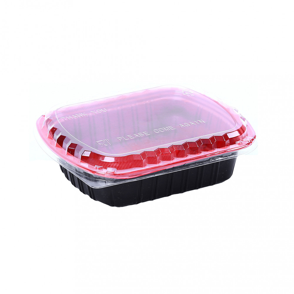 BLACK AND RED RECTANGLE M/W CONTAINERS + CLEAR LIDS