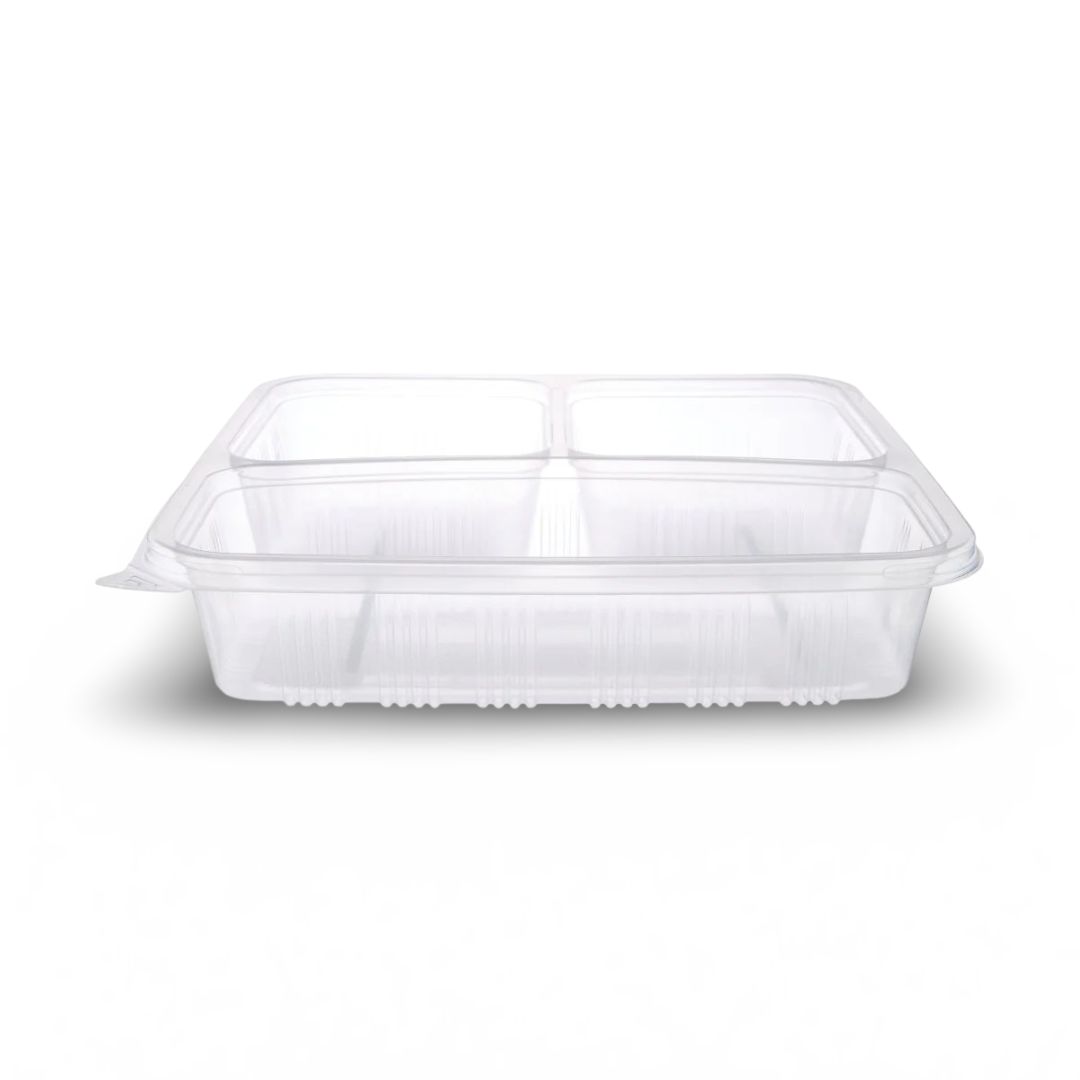 CLEAR MICROWAVABLE RECT. CONTAINERS 3 COMP + M/W LIDS